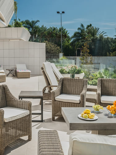 The spacious 73 m square terrace is furnished with sun beds, comfortable seating and an al-fresco dining area. I'm sure you will spend a lot of your time on this beautiful terrace.