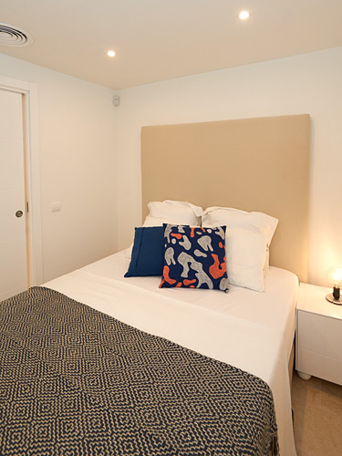 Leading off the kitchen is the first air conditioned bedroom with a double bed (160cm). In the entrance hall is a cloakroom with wc & basin.