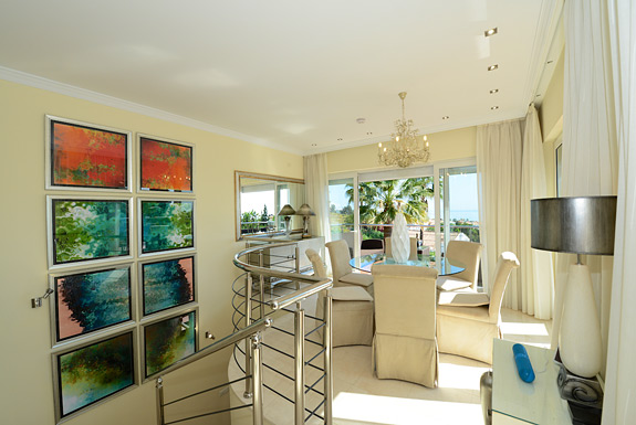 As you enter Casa la Colina with the full length windows and the view of the Mediterranean you know you have arrived at somewhere special. The villa is set over 3 levels - you enter on the mid-level into the open plan dining room that opens directly onto one of the external balcony terraces. Here you will find comfortable lounge chairs and seating, a dining table with chairs, sun loungers and a BBQ area with a retractable awnings to provide shade when needed.