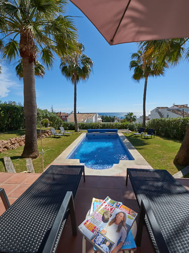 The villa is in a quiet location just a few minutes drive west of Estepona town centre and the marina. For beach lovers it is 10 minutes walk to Arena Beach and the facilities of the 5 star Elba Hotel. The nearby El Cristo beach has a number of chirringitos (beach bars) and is ideal for children of all ages with its gently graded sea. Estepona provides something for everyone. From its many shops, restaurants and bars in the old town to La Rada beach with its golden sand running the full length of Estepona town. Estepona Port is a lovely place to enjoy lunch and watch the world go by.